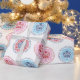 Stylish KING CHARLES III CORONATION wrapping paper in the official colours of red, pink, light blue and dark blue. The design shows the rose of England, the thistle of Scotland, the daffodil of Wales and the shamrock of Northern Ireland in a beautiful floral emblem, and this is repeated in an all-over tiled pattern. This King Charles III wrapping paper would make an ideal addition to your patriotic gifts, as you celebrate this momentous occasion in British royal history. Matching gifts available.