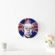 The clock did not take as long to arrive as I thought it might and was extremely well packaged. I didn't do the measurements so I didn't realize it is a little smaller than the average clock but that does not matter (just make sure you check if that's important to you).It is really nifty! It seems very solid and well made not flimsy at all. It has been going well and has kept good time in its few weeks on my wall. Nice product. Gets noticed too! Nicer in real life than the picture but true to the picture