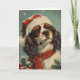 Capture the festive spirit with our Christmas card design featuring a charming Cavalier King Charles Spaniel adorned with a Santa hat. The joyful expression on the pup's face and the holiday-themed accessory create a heartwarming scene, perfect for spreading Christmas cheer to all your loved ones.