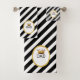 Elegant towel set with beautiful King Dad's crown with diagonal black and white stripes on the background. Text can be personalised. Chic modern towl set.