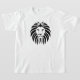 King Lion in Black. This features a stately drawing in black of a lion's face. He is not roaring, he is looking straight ahead with steady eyes. His main falls around his head in bold curved stripes. His face is simple and strong with few details, he does not need more. Jungle and safari theme of a lion's head. Available for kids or adults see selections.