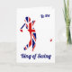NewParkLane - Golfers' Greeting Card, with a golf player in silhouette coloured with the British Flag - the Union Jack, and with fun quote 'King of Swing'. And on the inside: 'Happy Father's Day!