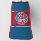 Eagle graphic letter monogram name and meaning stripe and shield crest golf cover in red, blue, white and grey. Ideal for a personalised gift for a golfing fan This example reads Robert King of the Eagle or you can customise the text with your own name or words. Other names, name meanings and letters in this knight crest shield style are available or can be created on request. © Graphic knights shield drawing, with a regal crown, bird of pray eagle head and star is illustrated and designed by Sarah Trett for www.mylittleeden.com