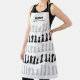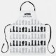 Classic black and white chess men apron for chess lovers, featuring chess figures in a geometric pattern. Modern chess pieces design