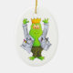 This geeky frog is the king of his lab and is all dressed up in brown pants and a white lab coat, complete with pens, notebooks, and rulers. His eyes are a little blood-shot from staring into his microscope and computer for so long, but it looks like he's finally had some kind of revelation after many hours of painstaking work. A great gift for anyone involved in scientific, forensic, or medical research or a student who dreams to become the next king of the lab! Don't forget that the reverse of this ornament can be printed with your customised message when you select the orange button on the product page.