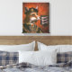 This canvas depicts king Richard the III as a fox set before a reddish background with a shield bearing three white foxes. It is painted in an aged style to give the feel of a medieval portrait.