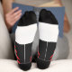 Socks are printed with water based inks and a signature 360 degree print