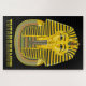 King Tutankhamun gold mask with gold effect Tutankhamun word jigsaw puzzle.