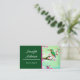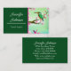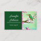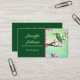 This lovely design features a green kingfisher bird against lovely cherry blossoms, and it has customisable placeholder text. The card has template text for a travel agent, but you can replace it with whatever your title might be, designer, consultant, writer, or whatever. Add your own details to the template, and feel free to add or remove items as needed. In addition to the bird design, which has a lovely Asian Sakura feel with a faux watercolor effect, there's a solid background of dark emerald green behind the text.