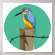 A vector illustration of a NZ native bird, the kingfisher or kotare. This colourful bird is perched on a farm fence post. A common sight across New Zealand.