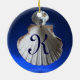 KINGFISHER & SEASHELLS BLUE SAPPHIRE MONOGRAM CERAMIC TREE DECORATION