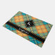 Plaid design in kingfisher palette colours. Seamless pattern. Custom text and monogram.