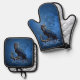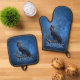 Kings of the skies and land, the majestic owl oven mitt & pot holder set