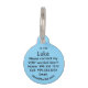 I love the pet tag - because it's white on the reverse, you can see all the contact details much more clearly than on a metal tag, and the image on the front matches his colouring - grey/blue and white! I've had so many comments on it already. The printing is so clear and uniform, unlike the metal tags that I've had done by hand in the past. So easy to read and because it's not one of those metal discs, there's no wear or colour-rub off. Brilliant.