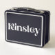 For professionals or anyone needing a versatile lunch pail, this lunchbox is equally ideal for carrying lunch to the office or keeping office supplies like pens, notebooks, and small tools in one convenient place. The cool contemporary font of the name "Kinsley" adds a modern, sophisticated touch, making this lunchbox a stylish addition to any desk or workspace. Its sturdy construction and sleek design ensure that it’s not only a practical storage solution but also a statement piece that reflects your personality and sense of style. Whether used for lunch, office supplies, or personal items, this personalised lunchbox delivers both form and function in a way that’s uniquely tailored to you.