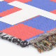 A quality printed throw has its advantages. This is a much finer weave throw than its loopier cousins, and though lighter, it is worth the investment for custom room accessorizing. The back is much prettier than the typical brown, and the fringe on the long sides very vivid, the selvage nicely done. Before photographing, I washed the throw in cold water, delicate, with a thicker woven throw the same size. On tumble dry low, this throw was dry in half the time as the other. This is a very practical quality if you use throws for furniture covers or to wrap up in frequently. The sleekness of the fabric makes it a great layer for accenting or protecting without the feeling of sitting on too much stuff. Perfect for napping or when you feel a light chill coming on. The color printing is beautiful and on this fabric, matched the design and color of my Photoshop image. This is an advantage for blending room fabrics and colors. The fringe on the short sides prints the colors from the design image and therefore varies from the side fringe. I streaked a white fractal line through the plaid pattern to give the illusion of weaving. This printed as crisp as an illusory thread, and put some white in the short side fringe, showing another advantage of print vs loomed- for artistic purposes, line lines, detail, and color integrity can be planned and preserved. My loomed throws have color limitations and more of a needlepoint texture. Print throws reproduce an exact image. The throw felt a little stiff straight out of the package, but this went away in the first delicate wash. Of course I searched the wash water for ink or bleeding and there was none.
