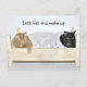 Orange tabby cat and black smoke cat at opposite ends of the bed after an argument need to Kiss and make up photo postcard. Text can be changed, removed or added to with the CUSTOMIZE button