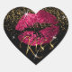 Kiss Hot Pink and Gold Glitter Lips Heart Sticker