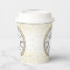 These festive party cups are the perfect way serve drinks at your New Years Eve party. A white cup with gold confetti and a Roman numeral clock with text that says "Kiss me at midnight."