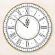 This round coaster features a black clock with Roman numerals on a white background. Around the edge of the coaster is a faux gold border. The interior of the clock says "Kiss me at Midnight." Perfect for New Years Eve or any other formal gathering.