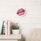 Kiss Me Glossy Red Lips Art Illustration Round Clock
