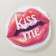 Kiss Me Glossy Red Lips Art Illustration Round Cushion
