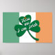 Kiss me I am Irish text design with shamrock and lips decoration on Irish flag background