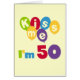 Turning 50? You'll love our Kiss Me I'm 50 birthday t shirts, mugs, cards, stickers, magnets, keychains, and other 50th birthday gear with a bright multicolored balloon and text design.