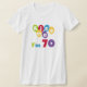 Turning 70? You'll love our Kiss Me I'm 70 birthday t shirts, mugs, cards, stickers, magnets, keychains, and other 70th birthday gear with a bright multicolored balloon and text design.