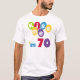 Turning 70? You'll love our Kiss Me I'm 70 birthday t shirts, mugs, cards, stickers, magnets, keychains, and other 70th birthday gear with a bright multicolored balloon and text design.