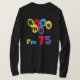 Turning 75? You'll love our Kiss Me I'm 75 birthday t shirts, mugs, cards, stickers, magnets, keychains, and other 75th birthday gear with a bright multicolored balloon and text design.