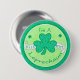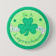 Show your love of the Irish on St. Patrick's day and your good luck with this button badge proclaiming "Kiss Me - I’m a Leprechaun". The words are on a light green textured background. "Kiss Me" is on a shamrock banner.