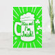 This greeting card opens on a bright green background that sets a lively St. Patrick’s Day scene. In the center sits a white beer mug with a foamy top, drawn with smooth shapes that make it stand out. Across the front of the mug, the phrase “Kiss me! I’m Irish!” appears in looping green lettering, giving it a flirty, friendly nudge 💚. Behind the mug, white rays spread outward like a spotlight, adding energy and a sense of celebration. Small white shamrocks are scattered around the green space, like little lucky notes drifting through the air ☘️. The simple green-and-white palette keeps the focus on the mug and message, like a quick glance shared across a crowded party. The foam is rounded and cloudlike, and the white rays fan out evenly from behind the mug.