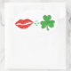 Stickers feature original illustrations of red lips and a bright green shamrock. A perfect way of saying "Kiss Me, I'm Irish!" Perfect for Saint Patrick's Day celebrations.