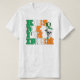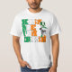Patriotic fun Irish flag colours of green, white and orange and text typography design with kiss me I'm Irish text and funny Skull wearing a silly hat with a shamrock.