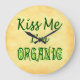 A decorative wall clock reading Kiss Me I'm Organic in decorated letters on a faux parchment background.. Customise It to add your name or message, change background colours, even save your design for later.
