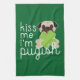 Kiss Me I'm Pugish St Patrick's Day Pug Clover Tea Towel