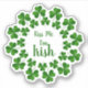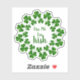 Kiss me I’m Irish sticker with shamrocks for St. Patrick’s Day. Add to clothing to celebrate the Irish holiday, or use in a scrapbook or journal. Choose a size and customise text if you want. Wording is in the centre with round borders of green clover. Each sheet contains one sticker.