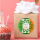 Kiss me I’m Irish sticker with shamrocks for St. Patrick’s Day. The green, white and orange flag of Ireland is the background. Add to clothing to celebrate the Irish holiday, or use in a scrapbook or journal. Choose a size and customise text if you want. Wording is in the centre with round borders of green clover. Round and square stickers come in two sizes. This design is not recommended for other shapes.
