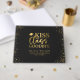 Perfect custom graduation party supply for the graduate! Celebrate their accomplishment in style with this guestbook. It says "KISS MY CLASS GOODBYE" in faux gold fonts against a black background. There are gold glitters on the edge of the cover. Personalise this product by adding their name and graduating year. You can add a custom photo on the back cover as well.