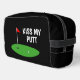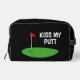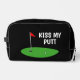 Kiss My Putt funny toiletry travel bag for golfer. Personalised golf gifts for him or her. Black or custom colour. Funny design with putting green, flag and ball.