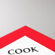 " KISS THE COOK " CHEF IN HAT AND APRON HOLDING A FRANKFURTER / SAUSAGE