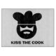 Kiss the cook glass cutting board with cool cartoon chef image.