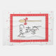A fun and brightly coloured red and black kitchen towel with "Kiss the Cook!" handlettered with background pattern of red stars and a wooden cooking spoon with bright red bow.