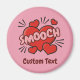 Word SMOOCH over red hearts. Kissing comic sound effect. Custom background colour. Custom text.