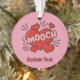 Word SMOOCH over red hearts. Kissing comic sound effect. Custom background colour. Custom text on both sides.