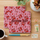 Word SMOOCH over red hearts. Kissing comic sound effect. Seamless pattern. Custom background colour. Custom text.