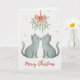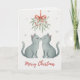 A charming Christmas card illustrated in the gentle, vintage Tradition Treasures style. Two soft grey kittens share a sweet festive kiss beneath a mistletoe tied with a red ribbon, surrounded by delicate snowflakes. The watercolour texture gives the scene a cosy, heartfelt winter feeling. A lovely choice for couples, cat lovers or anyone who enjoys a tender and nostalgic Christmas moment.