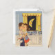 Cute retro artwork showing a husband and wife kissing while doing dishes. The smiling crescent moon in seen in the window.