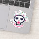 Kissy face sticker featuring a skull or skeleton head with botox lips, heart eyes cavities and cutesy florals, personalised with your own text if desired, perfect for your bags, drink, ride, technological doohickeys, work and school supplies.
